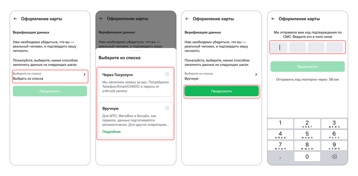 Выбираем способ верификации данных: